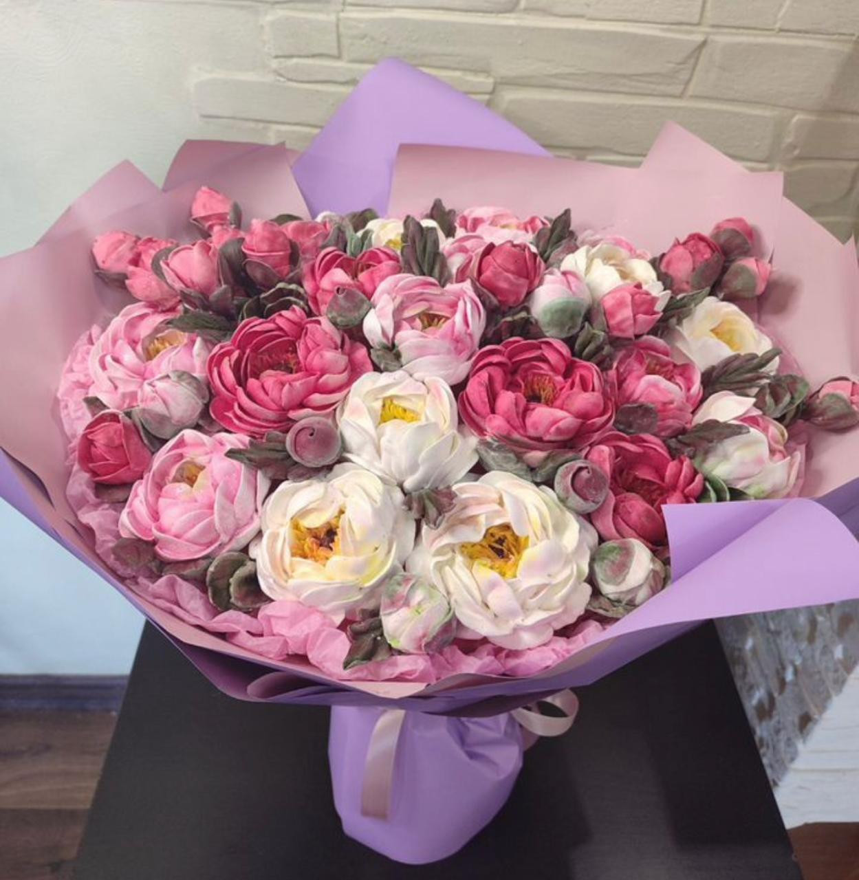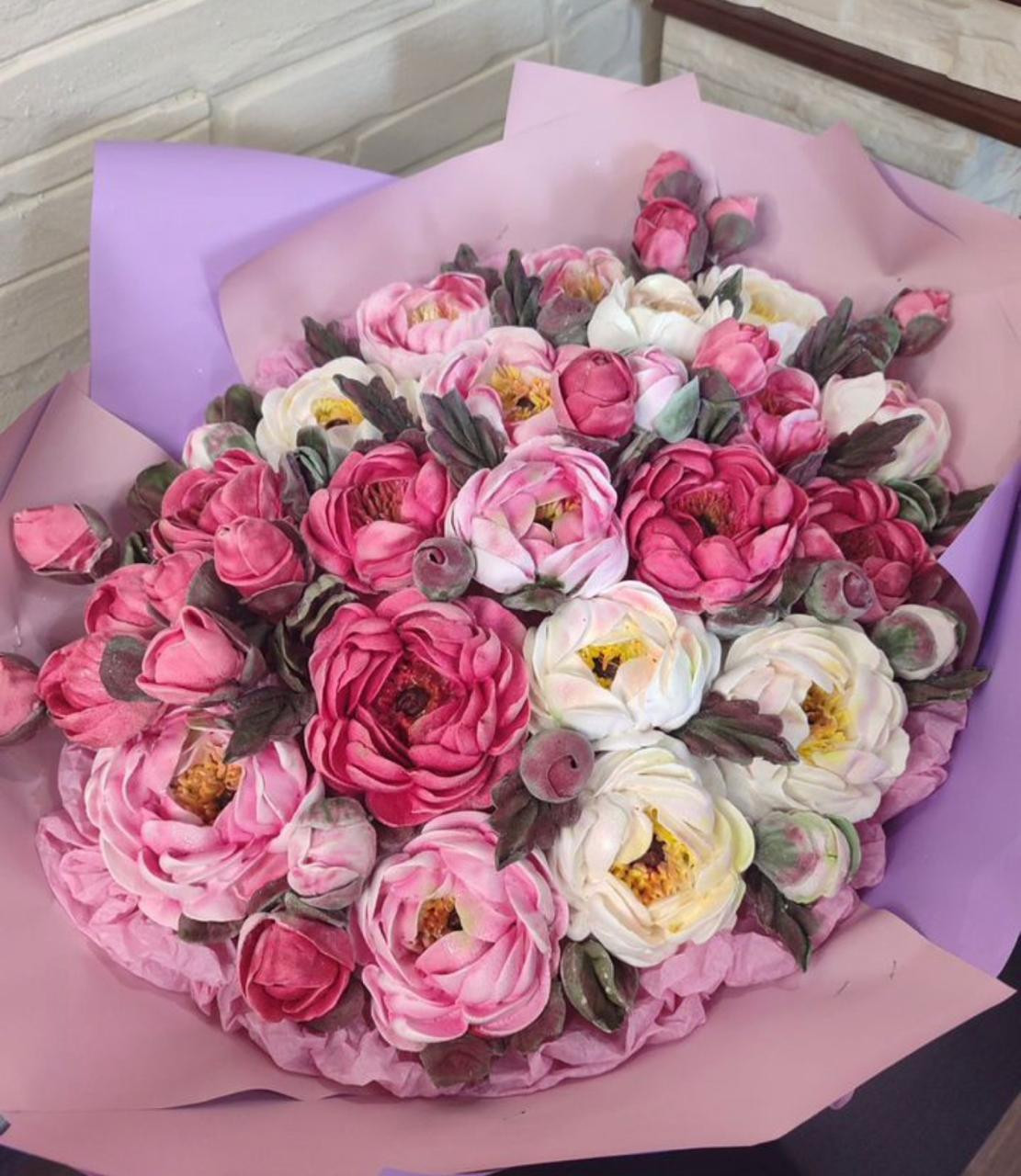 Букеты цветов из зефира, это ручная работа, а не фабричное производство. Поэтому 100% повторение образца невозможно. Но Вы можете быть уверены, что Ваш букет всегда будет эффектным, красивым, наивкуснейшим и гармоничным.
